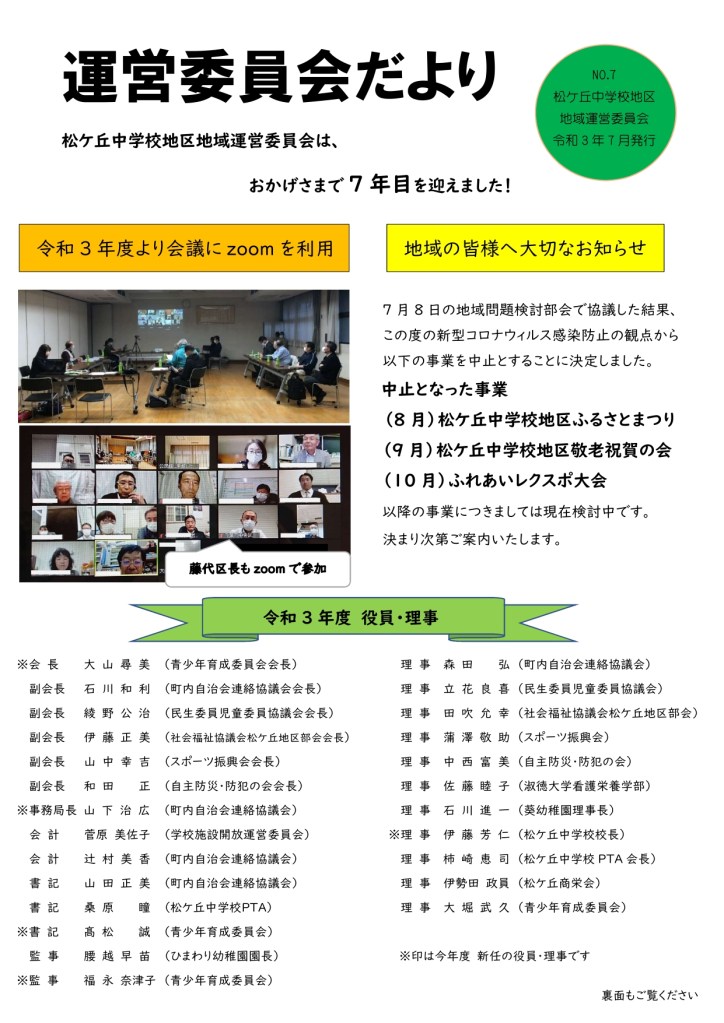 松ケ丘中学校地区地域運営委員会 運営委員会だより No.7 Date: 2021年7月27日Author: 事務局 0 コメント 共有: X で共有 (新しいウィンドウで開きます) X Facebook で共有 (新しいウィンドウで開きます) Facebook いいね 読み込み中… 関連