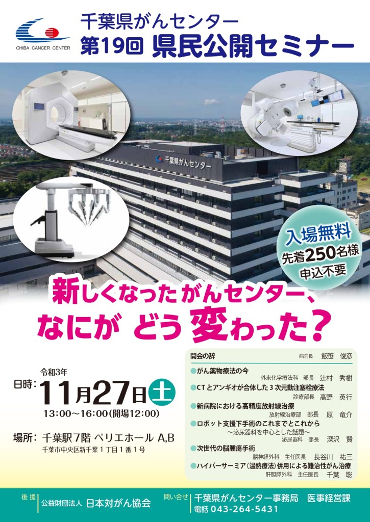 令和3年11月27日(土)13:00~16:00 千葉県がんセンター第19回県民公開セミナー