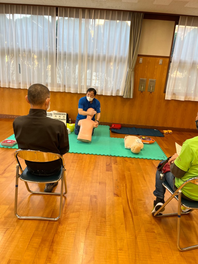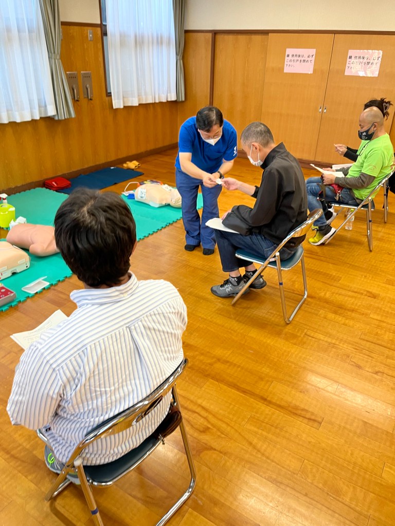 2022年10月23日松ケ丘公民館にて普通救命講習会を開催しました。公益財団法人千葉市防災普及公社から2名の講師をお迎えして16名が受講しました。心肺蘇生法、AEDの使い方、気道異物除去の方法を教わりました。3時間の講習終了後「普通救命講習修了証」をいただきました。