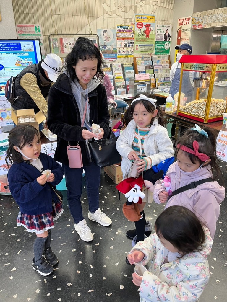 2024年2月11日(日)松ケ丘公民館にて5年ぶりとなる、子どもの広場を開催いたしました。来場者は役員・お手伝いを含め347名。千葉幕張ロータリークラブさんのご厚意で大勢の子ども達へのこんにゃく田楽のプレゼントができました。