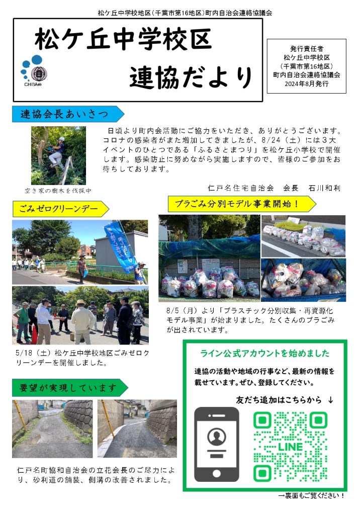 松ケ丘中学校区町内自治会連絡協議会 「連協だより」2024年8月発行 Date: 2024年8月27日Author: 事務局 0 コメント 共有: X で共有 (新しいウィンドウで開きます) X Facebook で共有 (新しいウィンドウで開きます) Facebook いいね 読み込み中… 関連