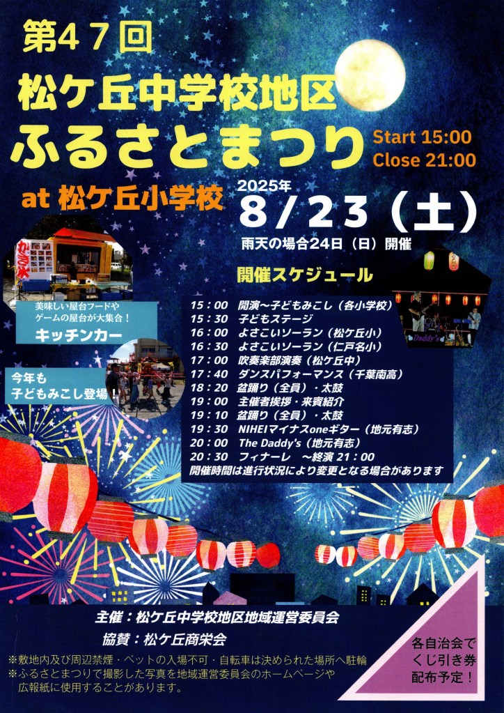 松ケ丘中学校地区地域運営委員会 第47回 松ケ丘ふるさとまつり Date: 2025年7月11日Author: 事務局 0 コメント 共有: X で共有 (新しいウィンドウで開きます) X Facebook で共有 (新しいウィンドウで開きます) Facebook いいね 読み込み中… 関連