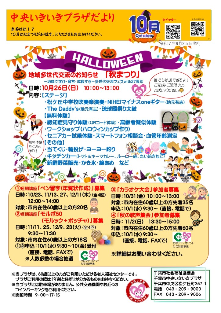 千葉中央いきいきプラザ 中央いきいきプラザだより~10月号~ Date: 2025年9月25日Author: 事務局 0 コメント 共有: X で共有 (新しいウィンドウで開きます) X Facebook で共有 (新しいウィンドウで開きます) Facebook いいね 読み込み中… 関連