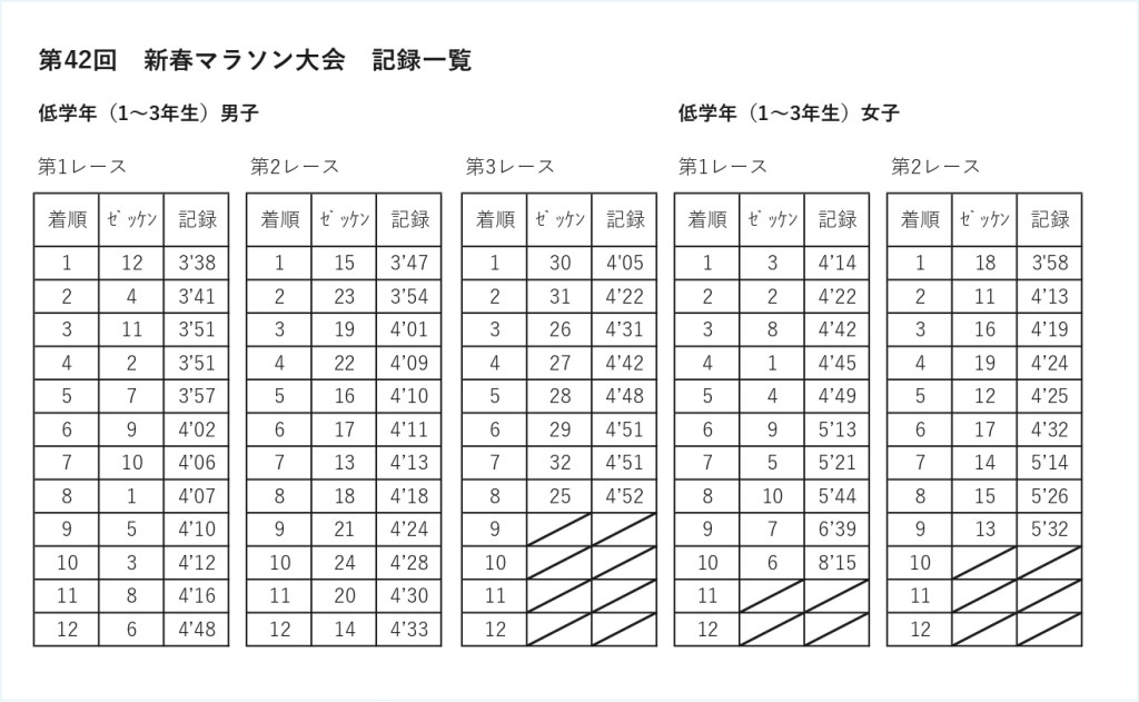 松ケ丘中学校区青少年育成委員会 第42回新春マラソン大会 Date: 2026年1月6日Author: ひだまりたろう 0 コメント 令和8年1月4日 松ケ丘中学校校庭にて第42回新春マラソン大会を開催しました。 4校の校長先生が見守る中、参加者146名は校庭周回コースを駆け抜けました。 着順の記録は以下の通りです。 共有: X で共有 (新しいウィンドウで開きます) X Facebook で共有 (新しいウィンドウで開きます) Facebook いいね 読み込み中… 関連
